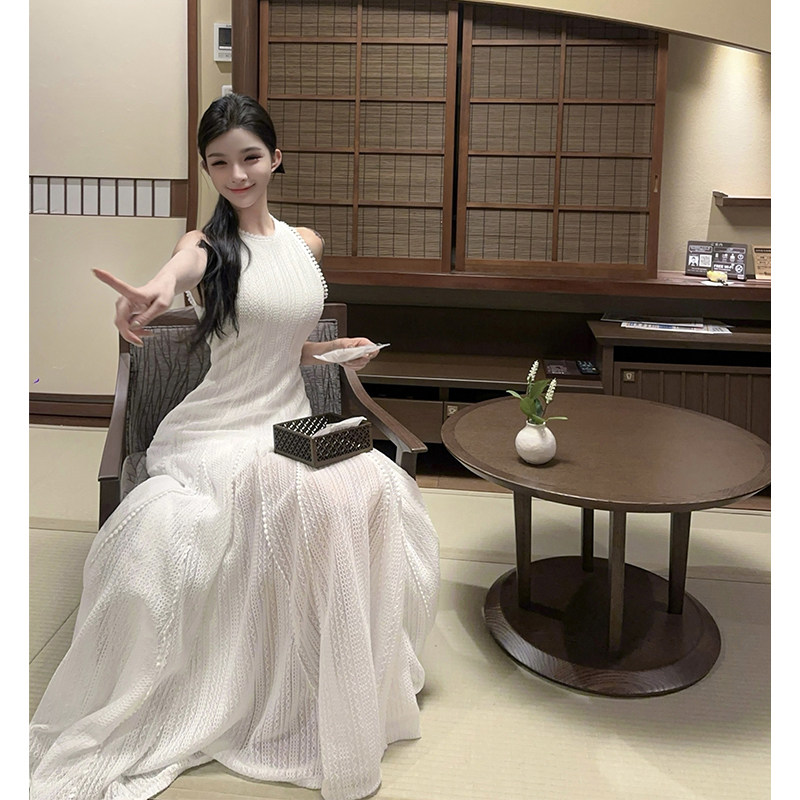 轻熟风ol秘书制服高级感蕾丝镂空透视御姐包臀裙挂脖无袖连衣裙女