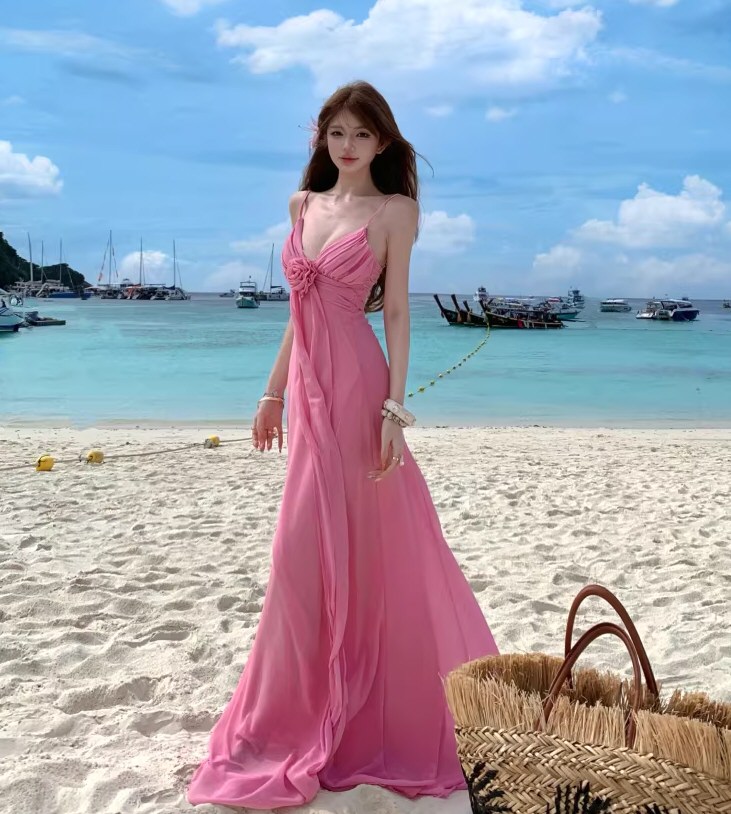 多巴胺性感纯欲风花朵印花吊带连衣裙女装春夏收腰显瘦包臀短裙