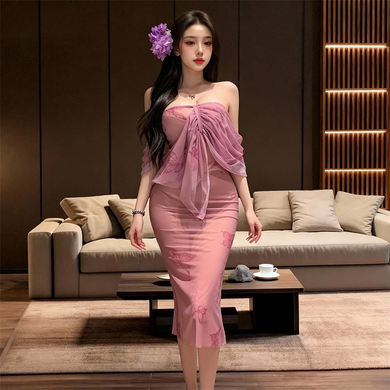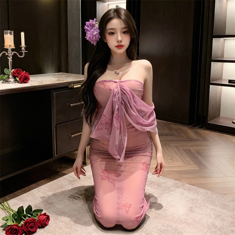 夜场性感晚礼服长款透视手工花夜总会减龄显瘦连衣裙桑拿技师长裙