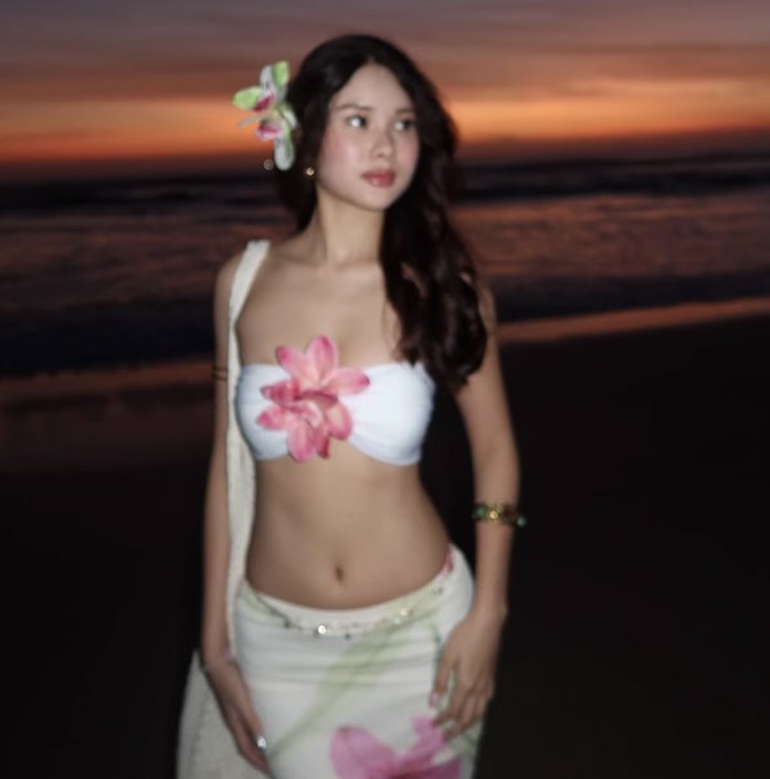 #Sisjuly#多巴胺海边度假落日热带花朵抹胸 纯欲印花半身裙套装女