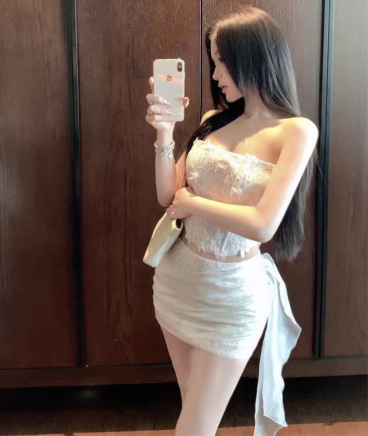 辣妹性感挂脖白色无袖连衣裙女夏季新款修身显瘦纯欲短款包臀裙子