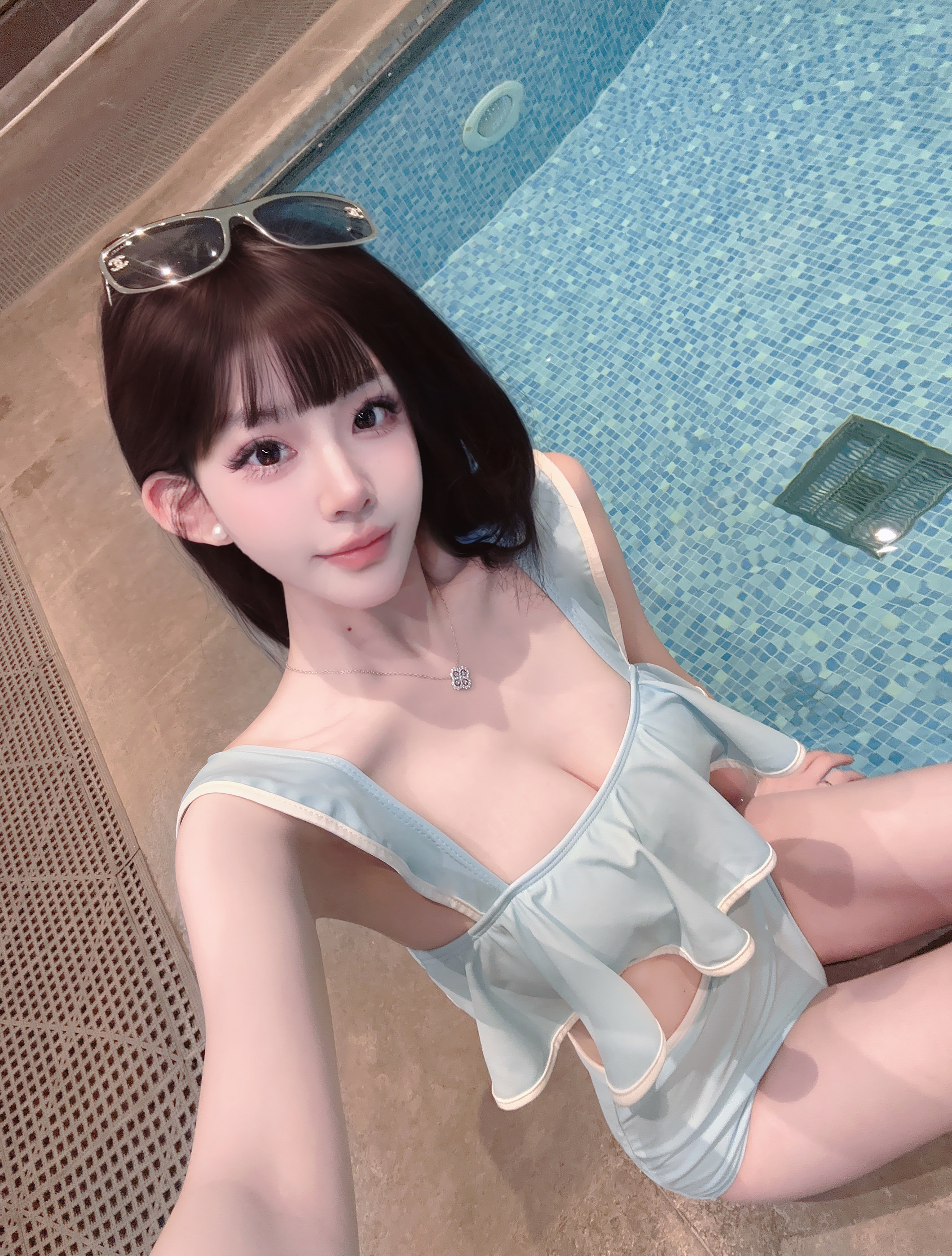 Eva君君酱纯欲甜辣妹小众度假泳衣女荷叶边带胸垫比基尼温泉泳装