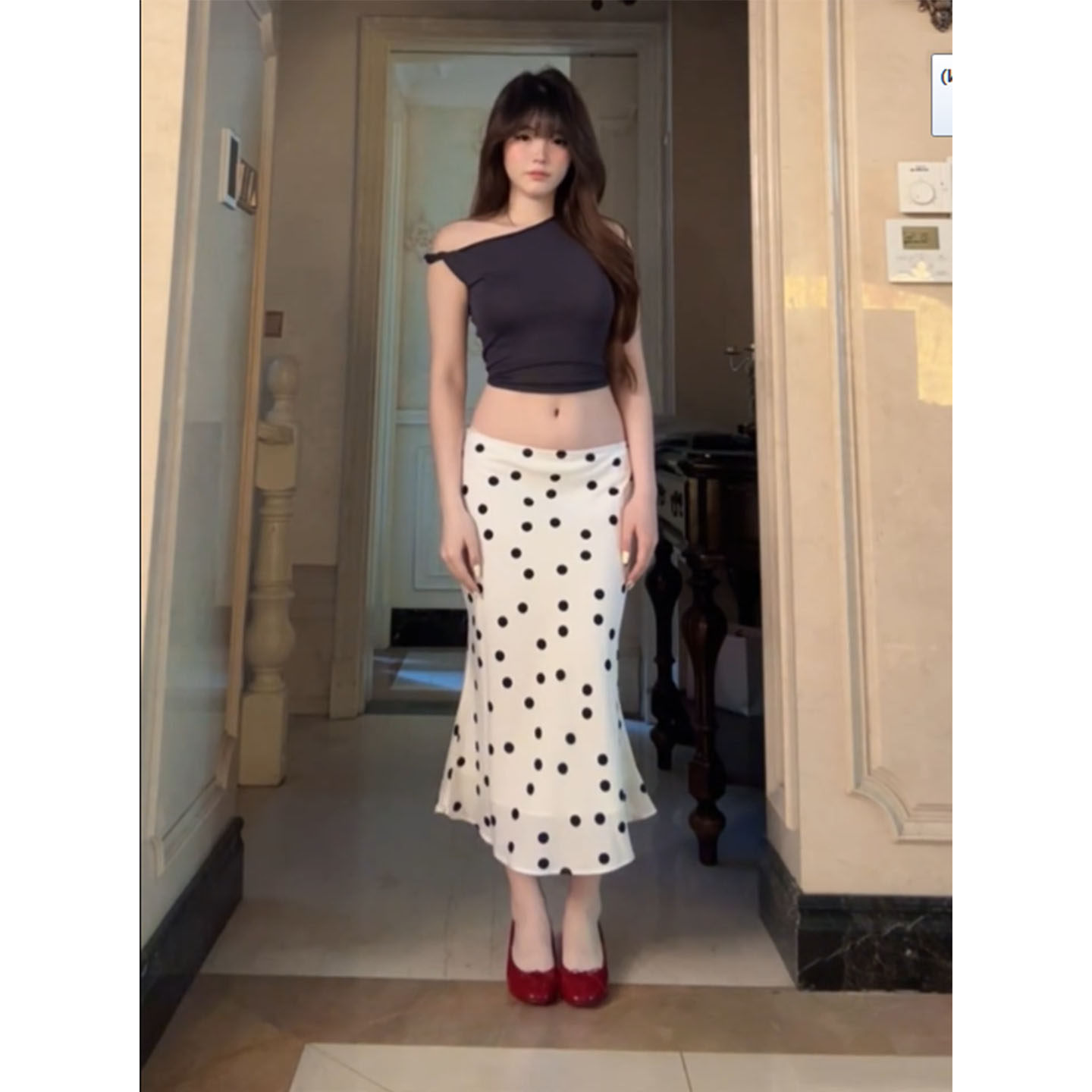 美式辣妹白色波点半身裙女夏季新款低腰修身休闲百搭包臀中长裙子