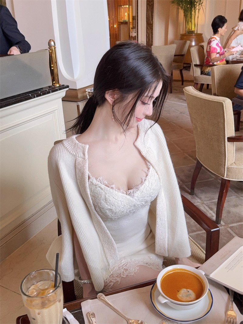 2025韩版纯欲蕾丝拼接吊带裙女夏季性感简约包臀短裙修身连衣裙