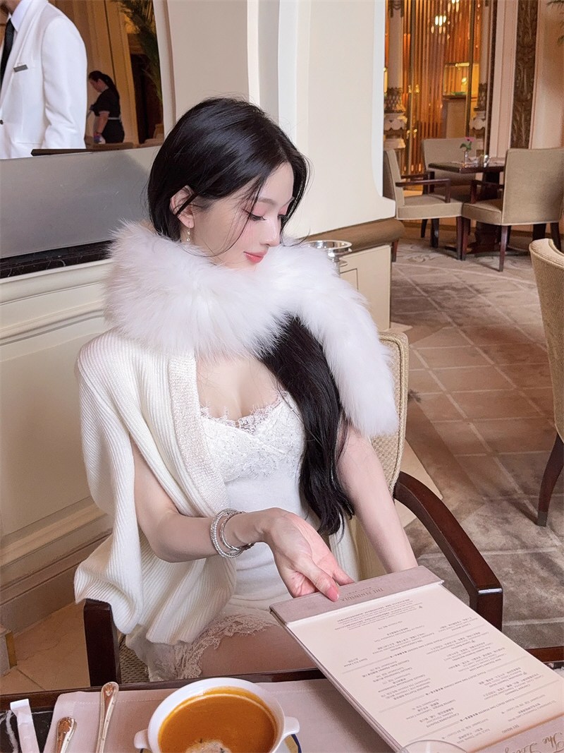 美式小众别致设计感蕾丝拼接收腰镶钻气质吊带蓬蓬裙显瘦连衣裙女