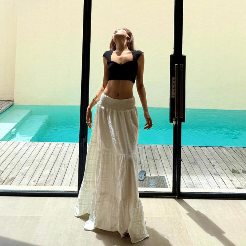 法式白色蛋糕裙女可两穿高低腰半身裙宽松气质百搭高个子A字长裙