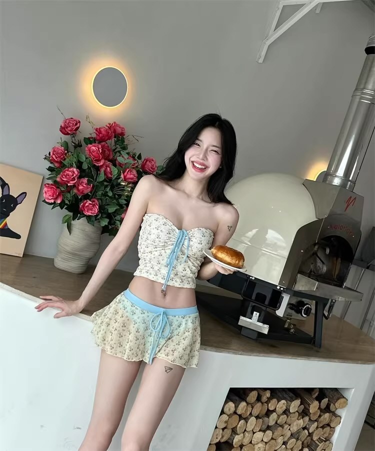 泳衣女新款甜美碎花分体裙式比基尼性感小胸可爱纯欲度假沙滩温泉