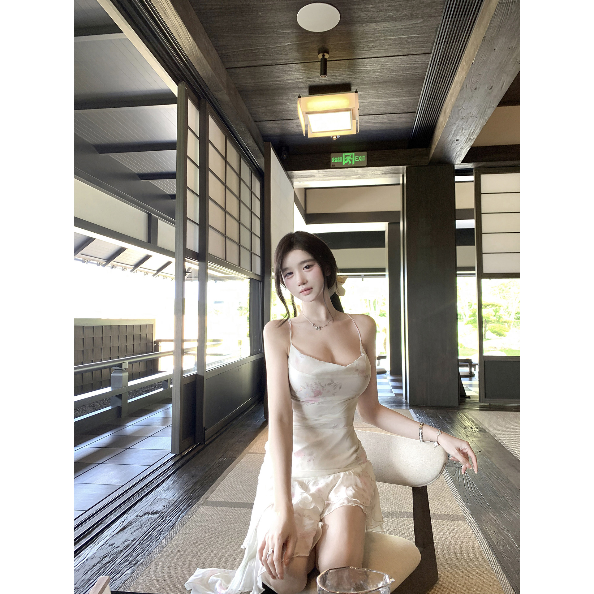 若语定制 繁花于你 碎花雪纺挂脖荡领连衣裙纯欲性感名媛吊带裙夏